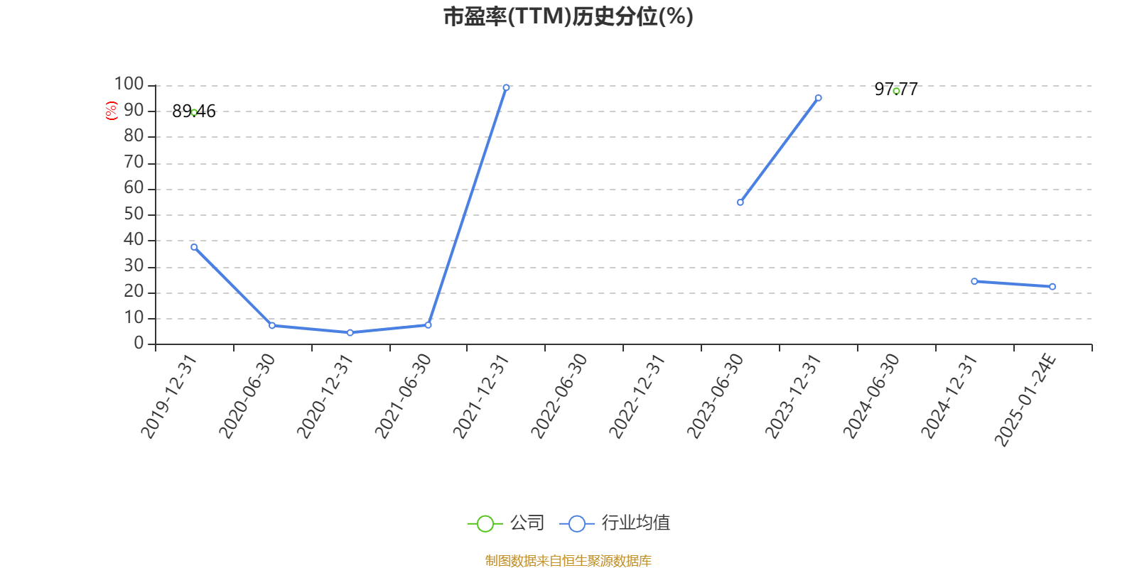 市盈率、市净率为负时,不显示当期分位数,会导致折线图中断。